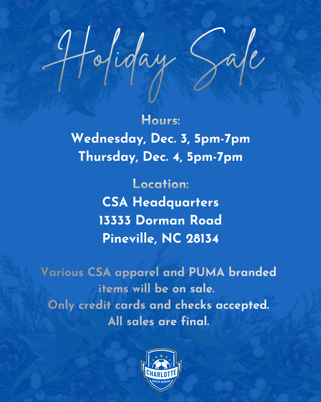 WALK UP FEES ARE WAIVED FOR ALL WINTER TRAINING! REGISTER AT THE FIELD FOR $150 ON THE FIRST DAY OF CAMP. ($125 for Recreational Level Winter Training). Please bring completed walkup form and pay at the field - debit/credit card preferred! Visit the camps site for details on dates, locations, and times!